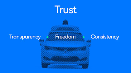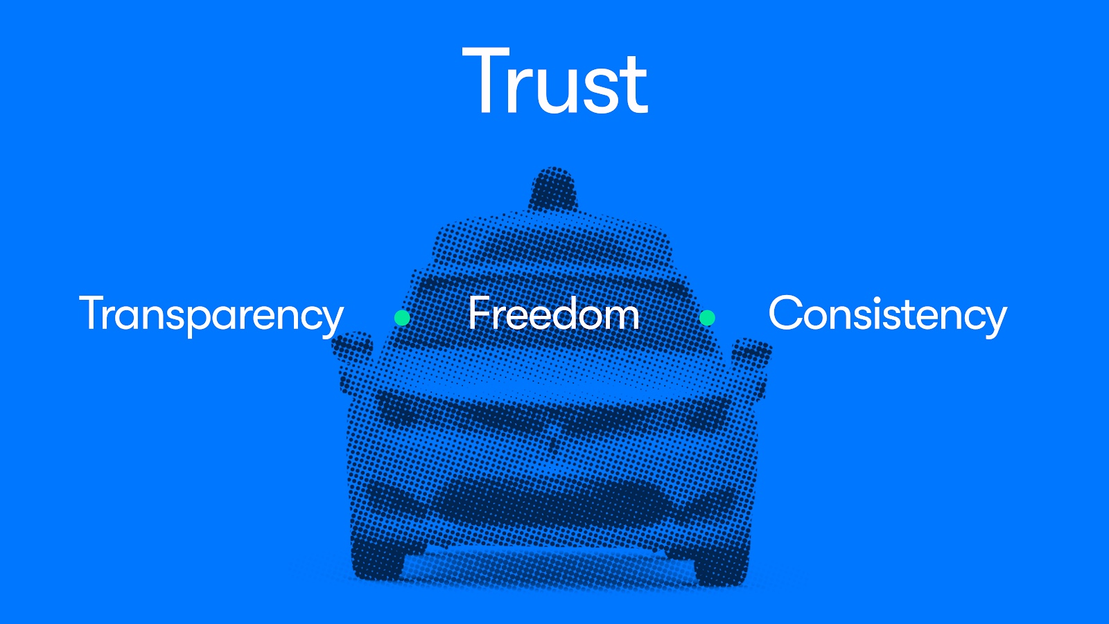Throughout the rider experience, from hailing a car in our app to exiting the vehicle at their destination, we work to build trust in several ways, all guided by three main design principles: transparency, freedom, and consistency.