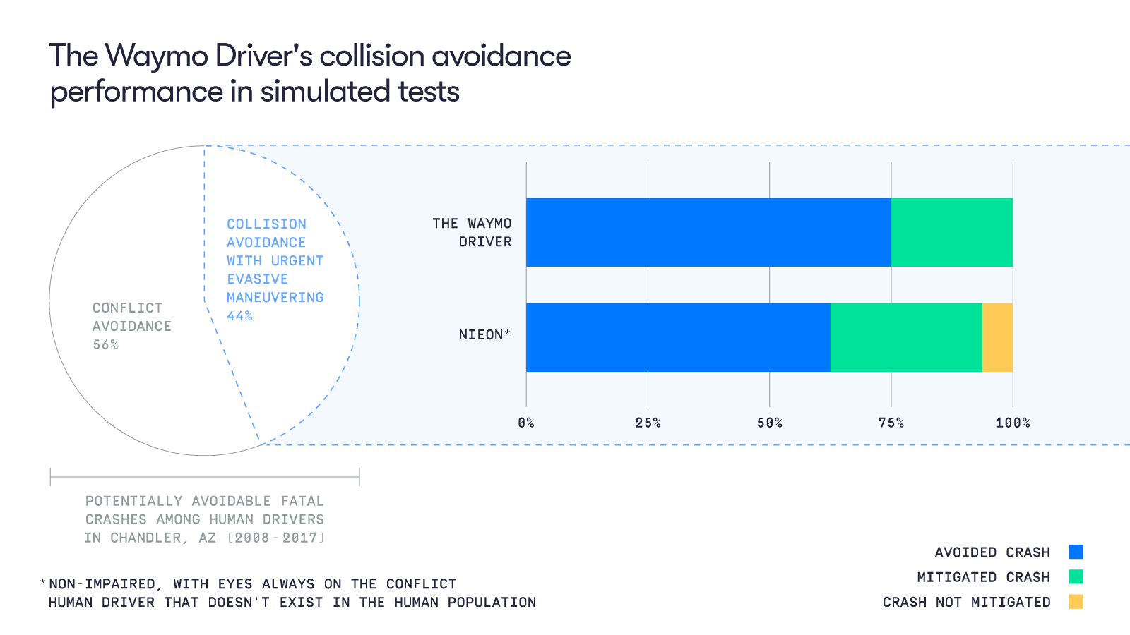 That was a useful measurement because it compared our performance to real drivers on the roads that we operate on in Chandler. While we don’t know the exact circumstances that contributed to those crashes, there are a variety of different factors such as driving while impaired, drowsy, or distracted by secondary tasks that may have been unique to their situation.