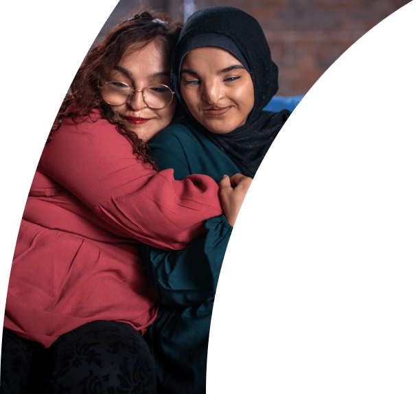 Two members of the Waymo community embracing