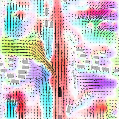 Given histories of all agents over input timesteps {t - 10, t - 9, ..., t}, predict future flow of all vehicles (currently observed or occluded), for 8 seconds into the future. More specifically, the predictions are 8 flow fields \(F_k, k \in \{0, \dots, 7\}\), capturing future flow of all vehicles at 8 different waypoints. Each flow field \(F_k\) is a 256 x 256 x 2 array containing (dx, dy) values indicating the displacement over 1 second of the vehicle part that occupies that grid cell.