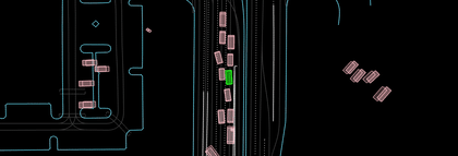 Waymax supports two modes of operation for simulating the behavior of uncontrolled objects in the scene - log playback and an IDM-based route-following model. Log playback replays the behavior of objects as they are recorded in the logged dataset, without regard to the actual states realized in a closed-loop rollout. The IDM-based model assumes vehicles follow the same path as recorded in the logged dataset, but adjusts the speed profile based on the Intelligent Driver Model (IDM) to speed up/slow down based on the positions of surrounding vehicles. Users can additionally plug in their own models into simulation to control arbitrary objects in the scene.